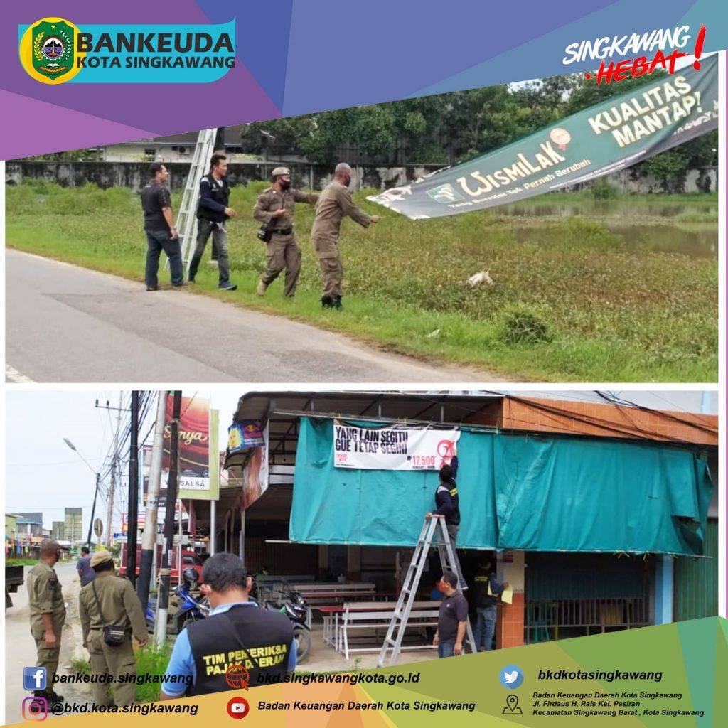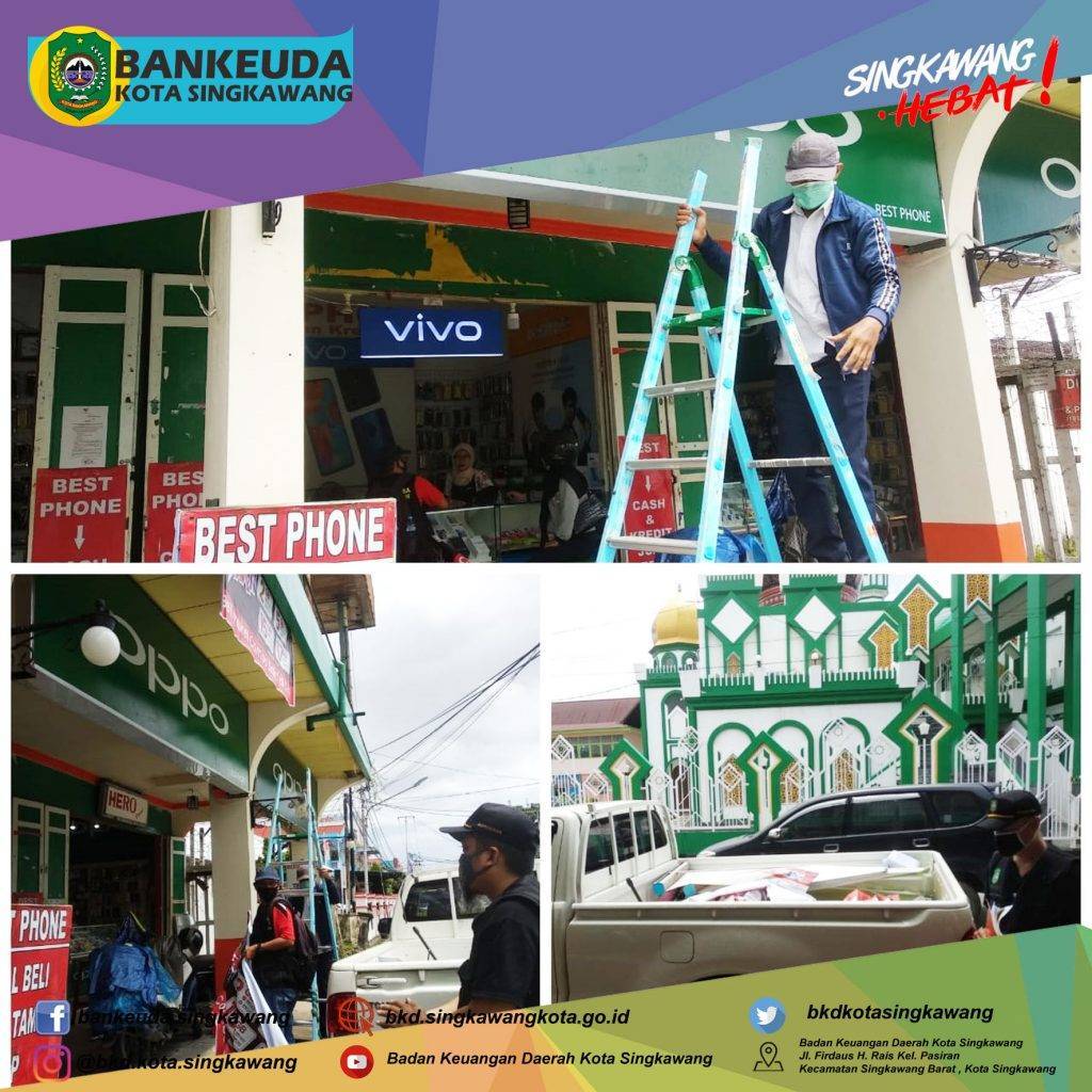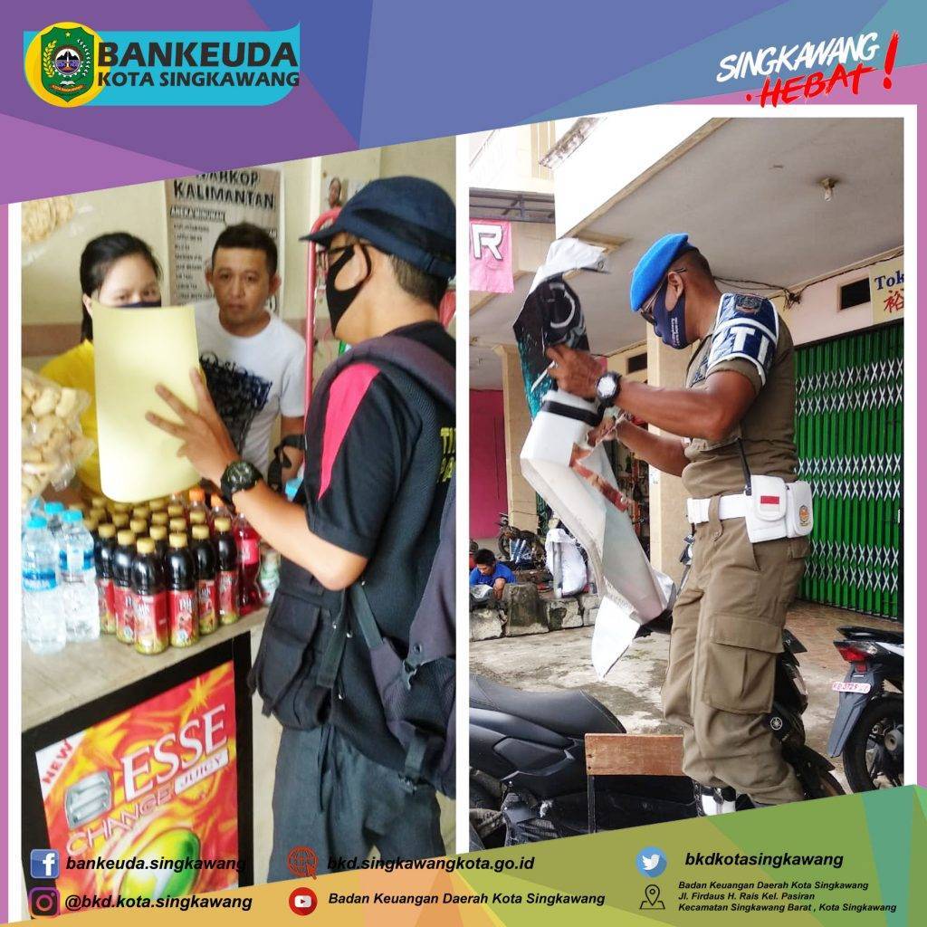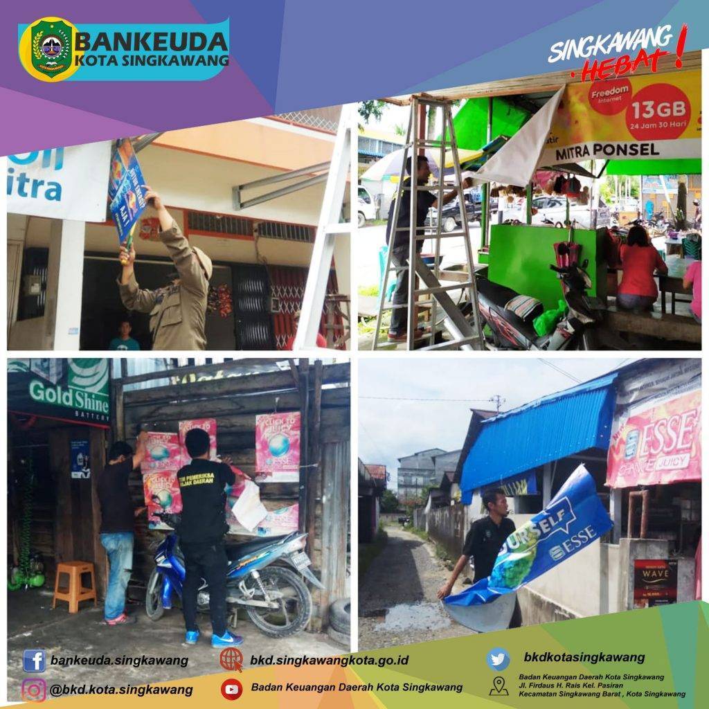 Agenda hari ke-1 kegiatan 𝐏𝐞𝐧𝐞𝐫𝐭𝐢𝐛𝐚𝐧 𝐏𝐞𝐧𝐲𝐞𝐥𝐞𝐧𝐠𝐠𝐚𝐫𝐚𝐚𝐧 𝐑𝐞𝐤𝐥𝐚𝐦𝐞 𝐝𝐚𝐧 𝐏𝐞𝐦𝐛𝐚𝐲𝐚𝐫𝐚𝐧 𝐏𝐚𝐣𝐚𝐤 𝐑𝐞𝐤𝐥𝐚𝐦𝐞 𝐝𝐢𝐥𝐚𝐤𝐬𝐚𝐧𝐚𝐤𝐚𝐧 𝐨𝐥𝐞𝐡 𝐓𝐢𝐦 𝐏𝐞𝐧𝐞𝐫𝐭𝐢𝐛𝐚𝐧 𝐑𝐞𝐤𝐥𝐚𝐦𝐞 meliputi BKD, DPMTK dan Satpol PP Kota Singkawang berupa teguran dan pencopotan Reklame Tidak Berizin di wilayah Kota Singkawang.