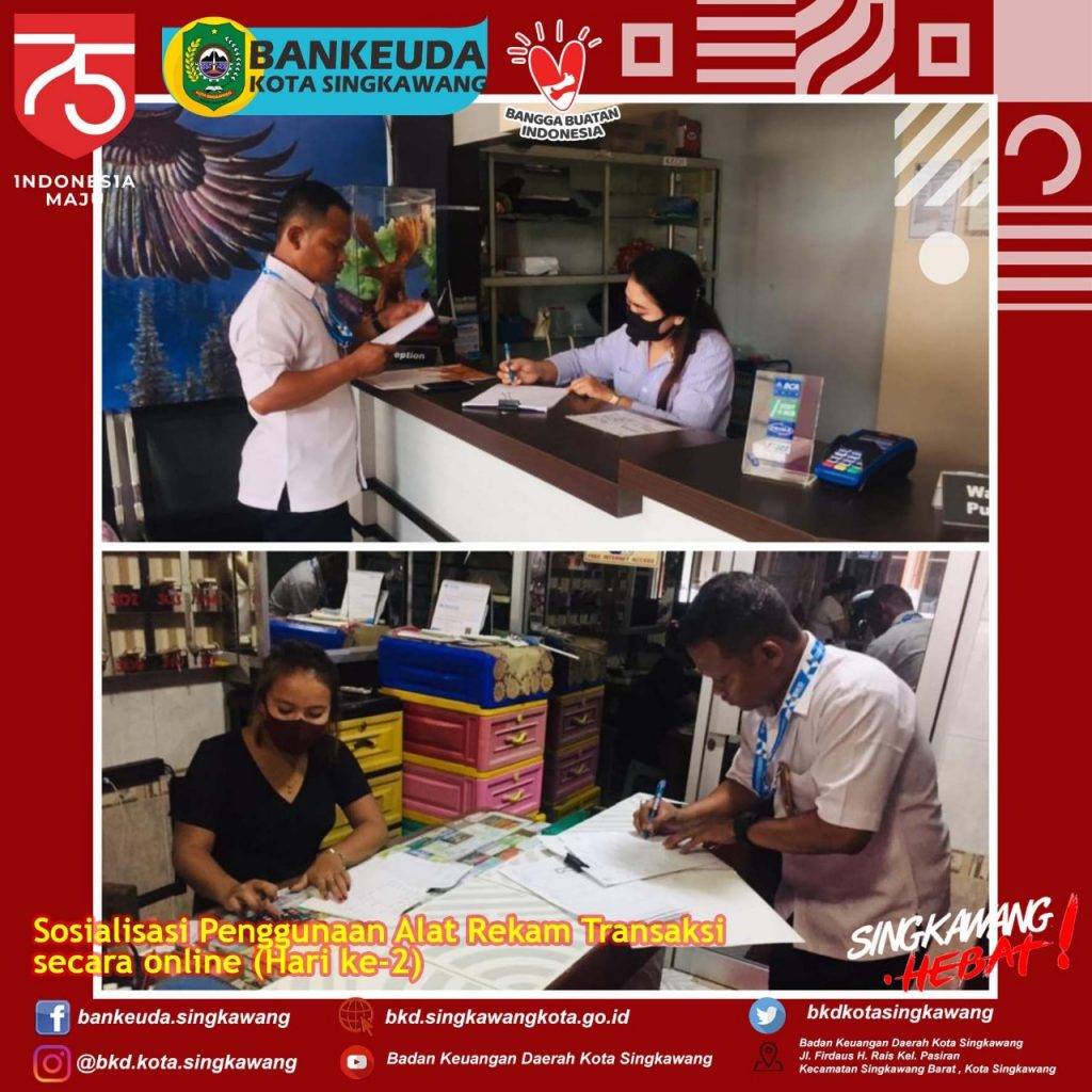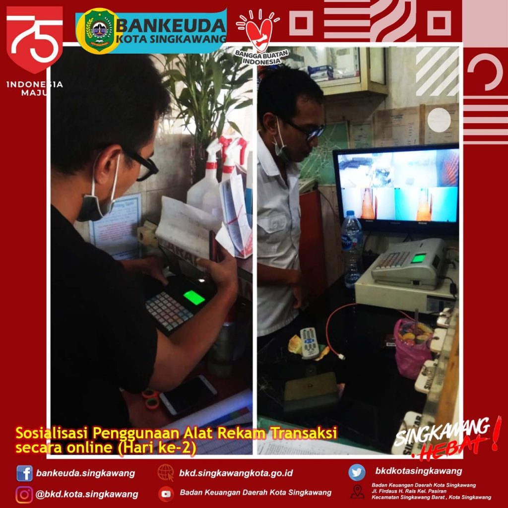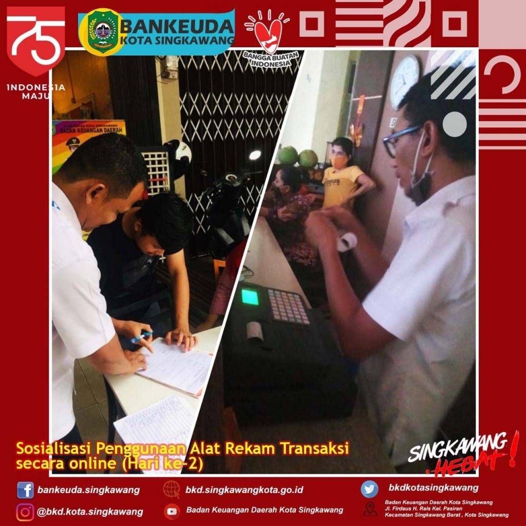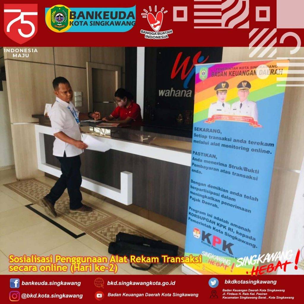 Agenda Hari ke-2, 𝗦𝗼𝘀𝗶𝗮𝗹𝗶𝘀𝗮𝘀𝗶 𝗱𝗮𝗻 𝗣𝗲𝗺𝗲𝗹𝗶𝗵𝗮𝗿𝗮𝗮𝗻 𝗔𝗹𝗮𝘁 𝗥𝗲𝗸𝗮𝗺 𝗧𝗿𝗮𝗻𝘀𝗮𝗸𝘀𝗶 𝘀𝗲𝗰𝗮𝗿𝗮 𝗢𝗻𝗹𝗶𝗻𝗲 dilaksanakan BKD Kota Singkawang melalui Bidang Pajak & Retribusi, berupa pemasangan Roll up banner di lokasi Objek Pajak.
