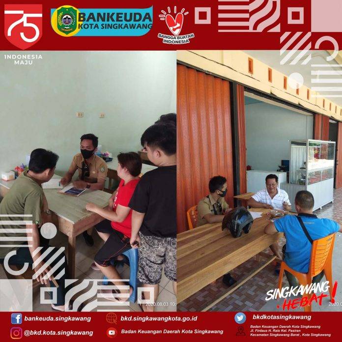 BeritaGaleri Kegiatan 𝗜𝗻𝘁𝗲𝗻𝘀𝗶𝗳𝗶𝗸𝗮𝘀𝗶 𝗣𝗮𝗷𝗮𝗸 𝗗𝗮𝗲𝗿𝗮𝗵 𝘄𝗶𝗹𝗮𝘆𝗮𝗵 𝗞𝗲𝗰. 𝗦𝗶𝗻𝗴𝗸𝗮𝘄𝗮𝗻𝗴 𝗧𝗶𝗺𝘂𝗿 Penulis Pajak dan Retribusi - 12 Agustus 2020 0 204 Agenda hari ke-1 kegiatan 𝗜𝗻𝘁𝗲𝗻𝘀𝗶𝗳𝗶𝗸𝗮𝘀𝗶 𝗣𝗮𝗷𝗮𝗸 𝗗𝗮𝗲𝗿𝗮𝗵 dilaksanakan BKD melalui Bidang Pajak & Retribusi, guna optimalisasi potensi Wajib Pajak baru di 𝘄𝗶𝗹𝗮𝘆𝗮𝗵 𝗞𝗲𝗹. 𝗣𝗮𝗷𝗶𝗻𝘁𝗮𝗻 𝗞𝗲𝗰. 𝗦𝗶𝗻𝗴𝗸𝗮𝘄𝗮𝗻𝗴 𝗧𝗶𝗺𝘂𝗿. Senin, 3 Agustus 2020